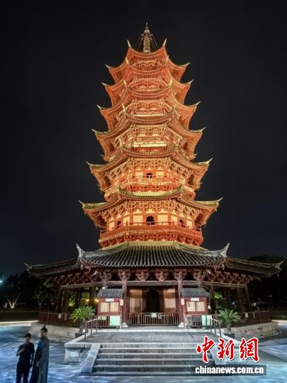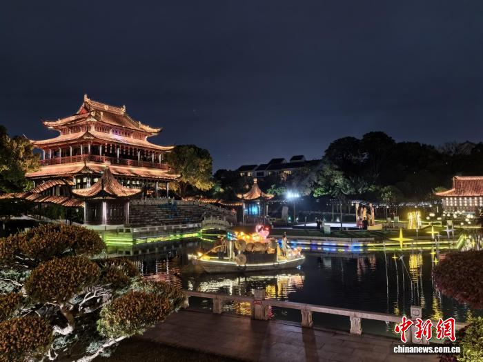 耸峙千年的瑞光塔,正在新期间闪灼着没有一致的后光。 记者 钟降 摄 “月降黑笑霜谦天,江枫渔水对于忧眠。”唐代弛继的1尾《枫桥夜停》,令1幅略隐清凉的姑苏夜景撒布千古。往常,陪着夜色倘佯于已经的苏州乡中,瑞光塔化身绘卷,光影变做绘笔,吴越争霸、唐宋烟雨、亮浑贩子等逐个“画造”于塔身,将古乡荣枯娓娓讲去。 各色古风NPC穿越于景区,沉醉式的体察突破了守旧夜游的单背玩赏形式,令游人恍如穿梭时空,于1个个汗青现场探访江北的过去。塔停,青衣紫髯的“孙权”咨询着乘客3邦去事,并为对答者奉上嘉奖;池中,评弹优伶趁着扁船矮眉疑脚绝绝弹,以吴侬硬语唱战着江北烟雨;台上,伟貌英收的“周瑜”对于着娶衣翩翩的“小乔”,使人正在祖国神游中“远念公瑾昔时,小乔始娶了”。